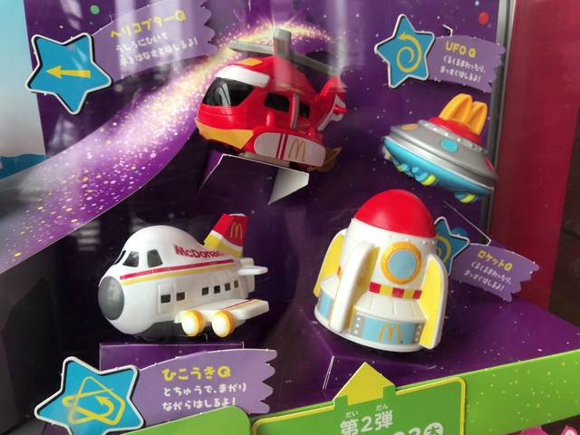 今回のハッピーセットチョロQは第1弾が車のチョロQ、第2弾は空の乗り物チョロQをテーマにしている。もちろんマクドナルドオリジナルで作られている。チョロQはただ真っすぐ走るだけではなく、様々な走り方をするチョロQとなっており、仕掛けがあるところが凝っている。様々な動きをするチョロQに子供は不思議に思いながら夢中になるだろう。