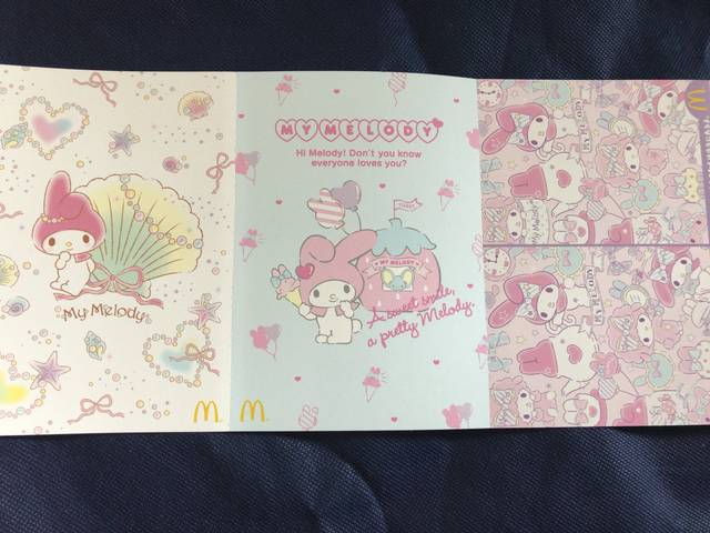 2018年7月28日(土)・29日(日)の2日間のみもらえる週末プレゼント。ハッピーセットでチョロQを選ぶと1セット購入につき、チョロQでとことん遊ぼう!サンサンサマーシート1マイがもらえる。3種類あり、シートの上でチョロQを走らせて遊べる。ハッピーセットでマイメロディを選ぶと1セット購入につき、マイメロディのポストカードがもらえる。こちらはマイメロディが描かれた夏らしいデザインの3枚つづりのポストカードだ。