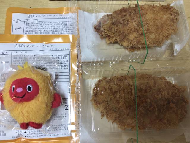 ロースかつだけでも926円で1,000円との差額は74円。74円でレトルトのさぼてんカレーソース2ヶ、更に新宿とんかつさぼてんのマスコットキャラクターのサクサクかつモンがもらえるのだから喜ぶべきだろう。サクサクかつモンのマスコットの袋にはハッピー!ラッキー!かつモンマスコットと書かれている。なんとも不思議なキャラクターだ。