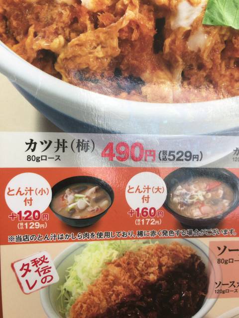 特売対象メニューのカツ丼(竹)について