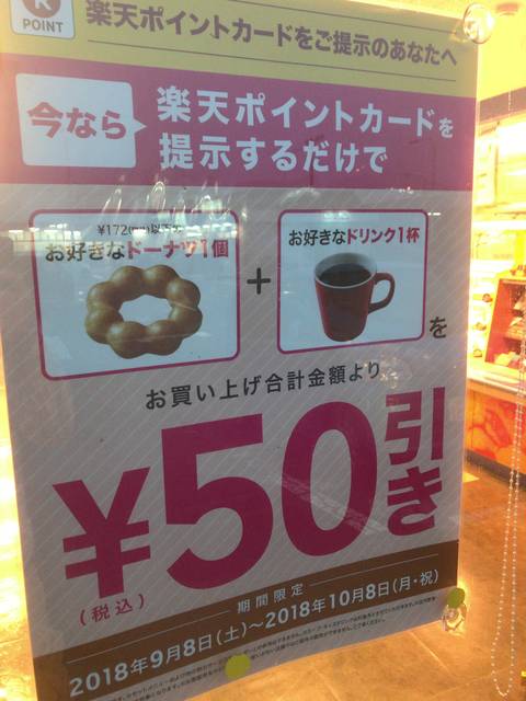 今日は9月30日だ、0のつく日である10日、20日、30日に該当するのでお客様感謝デーだ。ミスタードーナツカードでの支払いはお買い上げ金額から10%引きになると思ってミスドへ行くことにした。お客様感謝デーは2018年9月10日(月)から半年間続くとあり、実施期間が長くていいなと思った。
