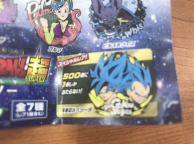 スペシャルレアの孫悟空&ベジータだったらもっと嬉しかったけど、さすがにそこまでの運はなかった。500個に1個しか当たらないスペシャルレアの孫悟空&ベジータは、ビッくらポンに当たるのが5回に1回で確率が1/5だとしたら、1/2500の確率となる。