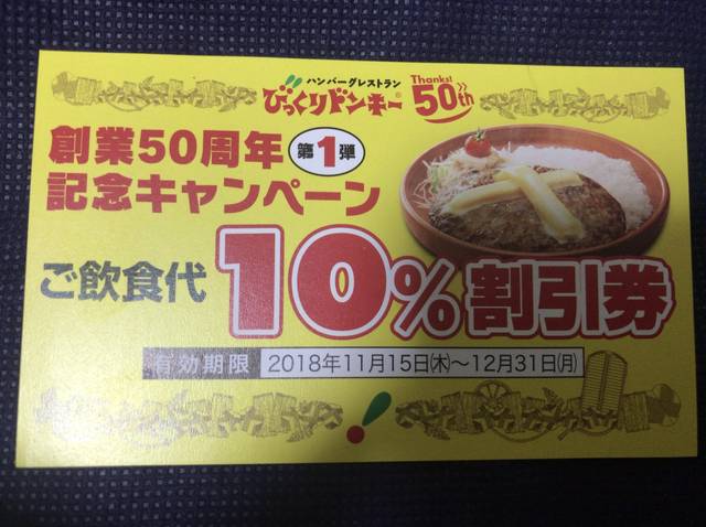 ハンバーグレストランのびっくりドンキーは創業50周年記念キャンペーン第1弾を実施中だ。このキャンペーンお店に行くと分かるのだが、びっくりドンキーのホームページには掲載されていない。キャンペーン期間は明らかになっていない。