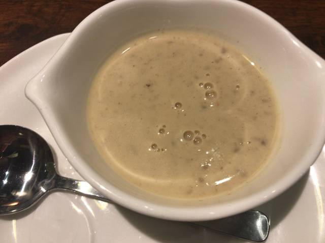 クリーミィきのこスープは濃厚でコクがあり、きのこの旨味が凝縮されていた。コース料理に出てくるような本格的なスープがびっくりドンキーで飲めるとは驚いた。ここは是非、みそ汁ではなくクリーミィきのこスープでいってもらいたい。
