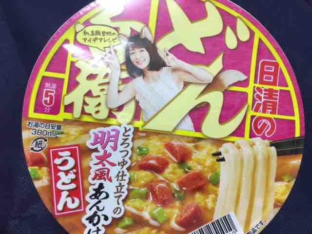 続いてこちらも吉岡里帆のアイデアレシピで、とろつゆ仕立ての明太風あんかけうどん。こちらも和山椒香る旨辛ラー油太そばと同様に売れている商品だ。商品パッケージでは吉岡里帆が手できつねのポーズをとっており、一日の仕事を終えて疲れて帰ってきたサラリーマン、または一日の授業を終えてくたくたの学生の心を癒してくれるだろう。
