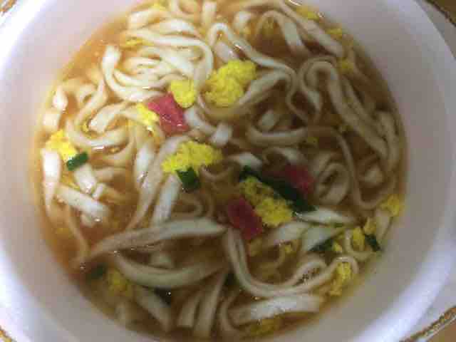 お湯を入れて待つこと5分。食べると、和風仕立てのあんかけが特徴。つゆにたらこの味がしてカップうどんなのに上品な出汁の味がするうどんだと思う。かやくに明太子が入っており、たらこ好きにはたまらない商品。薄味で食べやすかった。