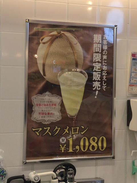 果汁工房果琳karin/フルーツバーAOKIには美味しいジュースがたくさんある。季節限定のジュースがセール価格で値引きされているときもあるので、お得になっているジュースを飲むのもいいが、ジュースチケットを使うのであれば折角だから1,080円(税込)という高額で贅沢なジュースのマスクメロンMサイズとシャインマスカットLサイズを飲むのをおススメする。