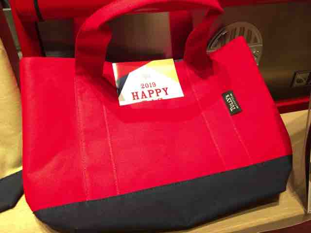 3,000円と5,000円のハッピーバッグにはオンワードとコラボしたオリジナルトートバッグが付いてくる。3,000円がベージュorレッド、5,000円がカーキだ。ハッピーバッグには毎年オンワードとのコラボバッグが登場するが人気がある。