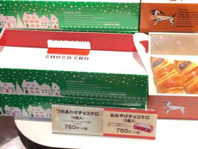 つめあわせチョコクロは新作チョコクロも含めて5個セットで単品購入価格よりもお得に買うことができる。このつめあわせはお土産にも喜ばれて人気だ。お馴染みのチョコクロが3個+期間限定チョコクロが2個で合計5個のチョコクロが870円(+税)のところを、760円(+税)と単品で5個買うよりもセットだと110円安く買うことができる。今の時期は期間限定チョコクロがホワイトチョコクロになる。但し、つめあわせチョコクロの場合、個包装はされていないため、サンタスリーブは付けられていない。