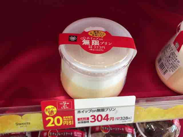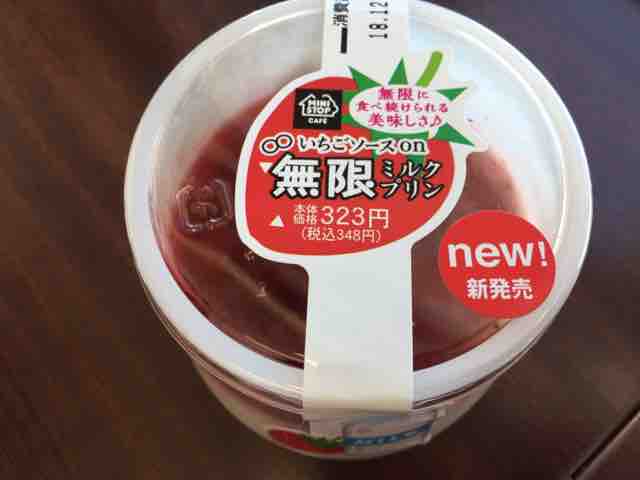 2018年12月25日から全国のミニストップで348円(税込)で販売開始された新商品のいちごソースon無限ミルクプリン。カロリーは238kcal。無限シリーズのデザートは、無限に食べ続けられる美味しさをコンセプトに大きくて美味しいスイーツをやや高めの金額設定で販売されている。これまで色々な味の無限プリンや杏仁豆腐、シュークリームなどが登場し、その度に話題になっている。