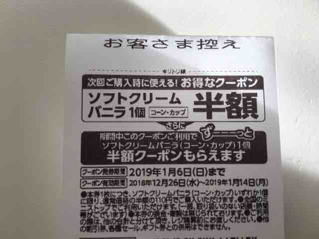 以降キャンペーン期間中はソフトクリームバニラを買うと同様に税込価格から半額になるレシートクーポンが無限にもらえ続けるというお得で面白いキャンペーンだ。