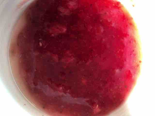 新商品のいちごソースon無限ミルクプリンを食べた感想は、牛乳の自然な甘味を感じるような甘さ控え目のミルクプリンの上にいちごの果肉入りのソースがかかっており、ミルクプリンのほんのりとした甘味といちごの程良い酸味がバランス良く美味しい。いちごの果肉が思ったよりも多く、食べるとプチプチとした食感も楽しめる。