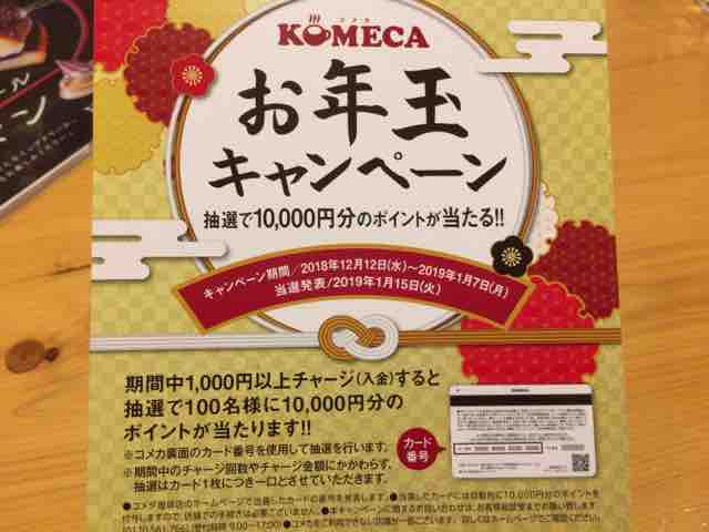 ・コメカに1,000円以上チャージすると抽選で100名に10,000円分のポイントが当たる