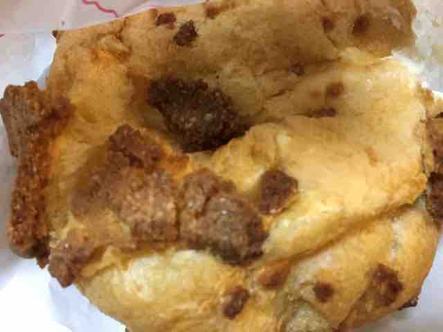 シュークリームの皮にはタルト生地が付いており、茶色のゴロゴロとした岩のようなものが目立つ。最初はこのゴロゴロは何だろう?と不思議に思ったが、食べるとクッキーのようなサクサク感が楽しめ、シュークリームでケーキの底生地を味わえるのが良い。シュークリーム専門店だからこそニューヨークチーズケーキをクリームと生地で再現して、贅沢なシュークリームとして作り上げられるのだろう。このシュークリームの味はかなり美味しいのでクセになりそうだ。