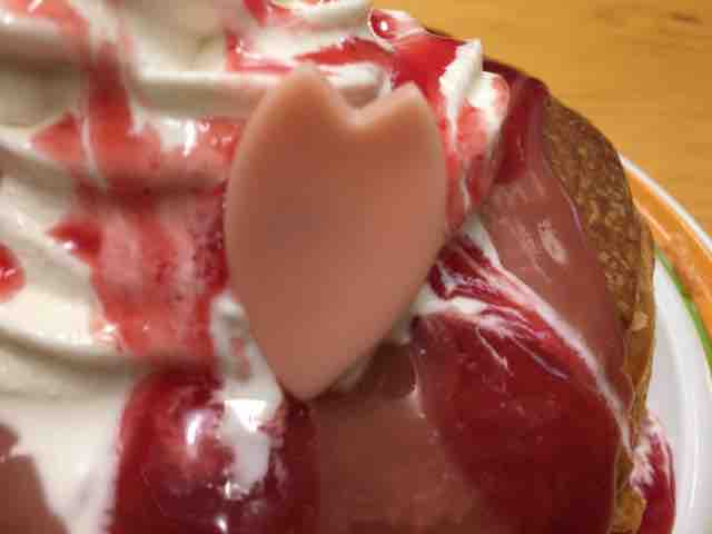 デニッシュパンの中には何も挟まっていない。シロノワール派生商品の中にはデニッシュパンの間にソースを入れることもあるが、このシロノワールいちごチョコに関しては甘過ぎる味になると考えて敢えて何もいれなかったのだろう。デニッシュの上には固形の花びら型チョコプレートが添えられて更に彩かわいく仕上げている。バレンタインの時期にぴったりなメニューだ。