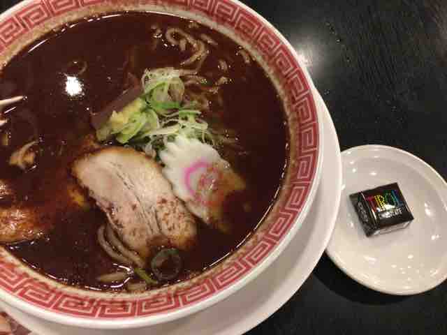 そしてらーめんと一緒に出されたのは、コーヒーヌガーのチロルチョコが1個。さすがにチョコレートらーめんを食べてすぐにチロルチョコは食べられないと思うので、これはお土産にしよう。まさにチョコ尽くしだ。
