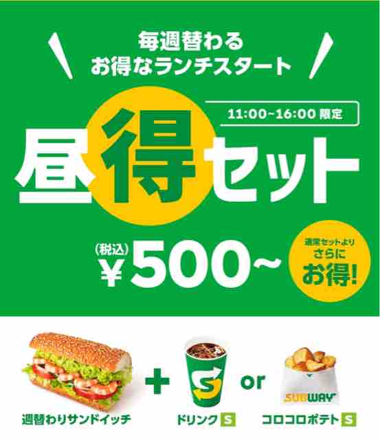 ・サブウェイのランチ限定でお得な「昼得セット」が始まった
