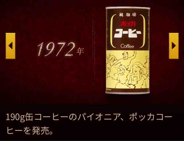 缶コーヒーのポッカコーヒーは、1972年より男性の顔のイラストが描かれたパッケージで、コーヒー感と甘みのバランスのとれた味わいとしてロングセラー商品になっている。