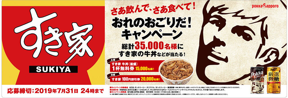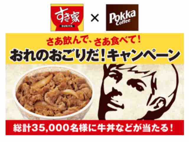 キャンペーン名は「さあ飲んで、さあ食べて!おれのおごりだ!」で、ポッカコーヒーの缶に描かれている男性が、ポッカコーヒーを飲んだ人に対して、すき家の牛丼をおごるというコンセプトのキャンペーンとなる。今回はポッカコーヒーとすき家のコラボキャンぺーンを紹介していきたい。