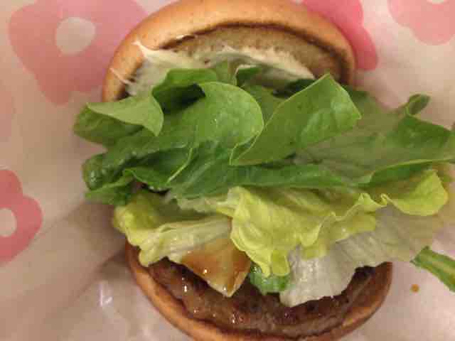 提供されたクリームチーズテリヤキバーガーを見てまず思ったことは、レタスの量がものすごいことだ。野菜が多いっていうのは嬉しい。いつもボリュームのあるハンバーガーを食べるときに戸惑うのだが、どこから食べればいいか考えてしまう。このバーガーの場合、まずレタスの量に圧倒される。