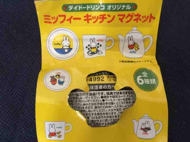 このミッフィーのキッチンマグネットおまけは、ダイドードリンコのホームページで公開されているわけではない。これまでもダイドードリンコからミッフィーのおまけは何度も登場しているが、スーパーなどで通りがけに気が付いて、「可愛い!欲しい!」とその場での注意を引いて購入につなげる方法をとっている。