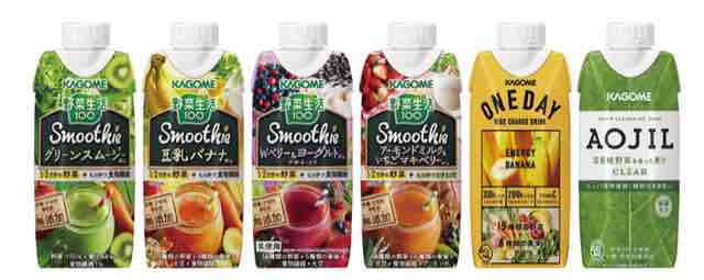 まずはキャンぺーン対象商品を紹介していきたい。カゴメのスムージーなど6種類となる。カゴメ野菜生活100Smoothie330ml各種は、グリーンスムージーMix、豆乳バナナMix、Wベリー&ヨーグルトMix、アーモンドミルク&いちごマキベリーMix、カゴメ ONEDAY ENERGY BANANA 330ml、カゴメ AOJIL CLEAR 330mlとなり、価格は税込各178円。