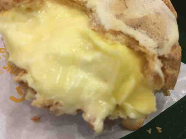 20周年記念商品は節目の年を記念しているので、商品開発にも力を入れていることが分かる。生地にラングドシャを乗せてシュークリームにするという発想がすごい。ラングドシャシューの中に入っているクリームはパイシューやクッキーシューと同じで、カスタードクリーム。
