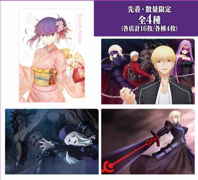 コンビニエンスストアのローソンで、劇場版「Fate/stay night[Heaven's Feel]Ⅱ.lost butterfly」のオリジナルA5クリアファイル全4種のプレゼントキャンペーンが始まった。