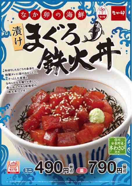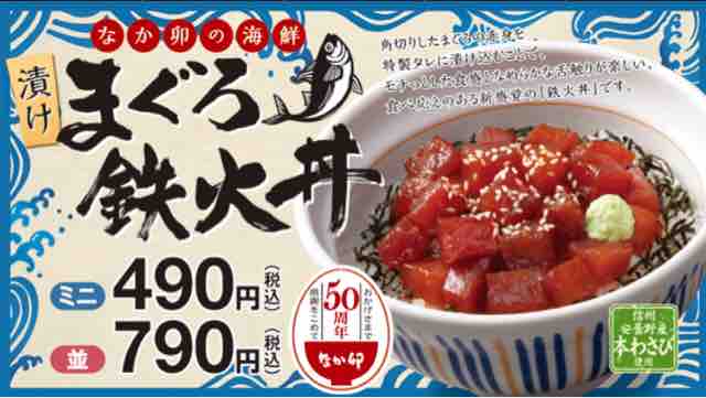 ・毎月14・15・16日はなか卯の日、5月は漬けまぐろ鉄火丼が対象