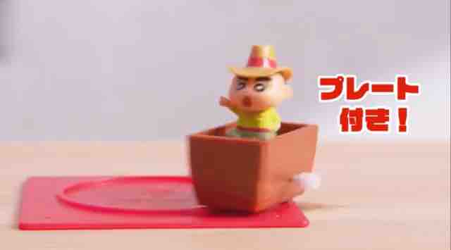 今回登場するキャラクターは、映画で主な登場人物となる野原一家となる。このトロッコカーは、ゼンマイを巻いて走らせることができる。動きのあるおもちゃは子どもが大喜びしそうだ。対象年齢は3才以上。ゼンマイは強く巻きすぎると壊れる場合があるので、気をつけよう。