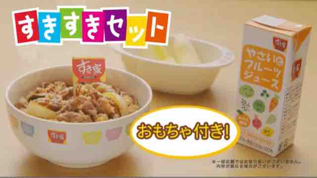 子どもに限定されたセットという訳ではなく、大人でも注文することができる。サイドメニューにすきすきセットは付けることができない。