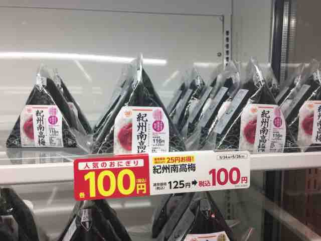 通常価格税込125円→税込100円。25円引き。THE定番の梅を味わえるおにぎり。