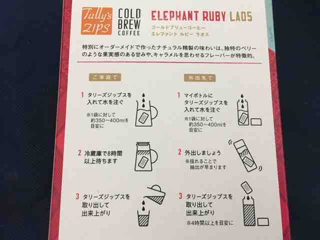 タリーズコーヒーのジップスは、タリーズコーヒーオリジナル商品が、カップにセットしてお湯を注ぐだけの簡単ドリップで楽しめたり、コーヒーバッグと水を容器に入れて冷蔵庫に入れておくだけで、アイスコーヒーを楽しめたりと、手軽に美味しく飲むことができる。