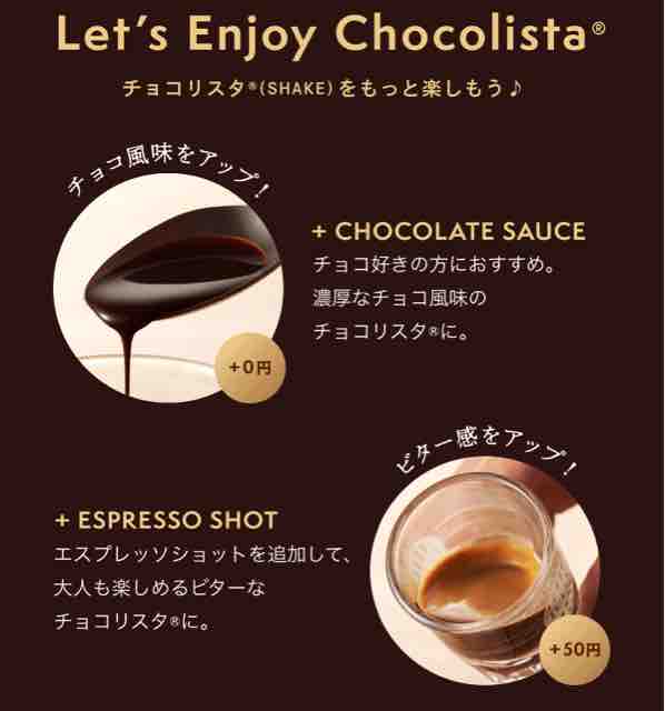 ・チョコリスタにチョコレートソースやエスプレッソショットを追加してもいい