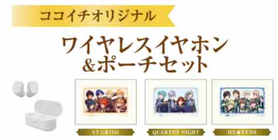続いてココイチオリジナルワイヤレスイヤホン&ポーチセットが3種。各15名様、合計45名様に当たる。ケースサイズは約W69×H30×D29.5mm、ポーチサイズは約W230×H170mmで綿製。いつでもどこでも、あの美声にうっとり。オリジナルデザインのポーチとなる。