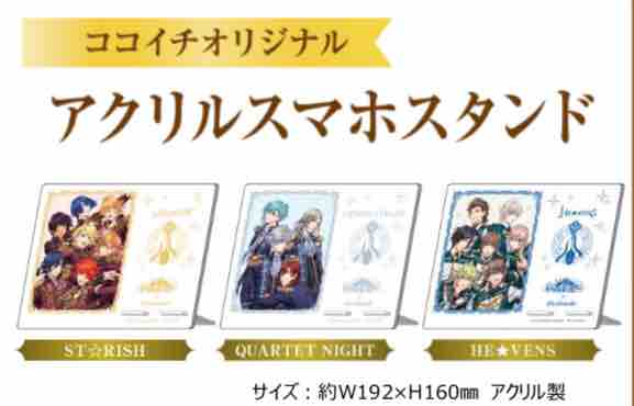 続いてココイチオリジナルアクリルスマホスタンドが3種。各50名様、合計150名様に当たる。お部屋やデスクで毎日アイドル達に会えちゃうインテリアとしても素敵なアクリルスマホスタンド。