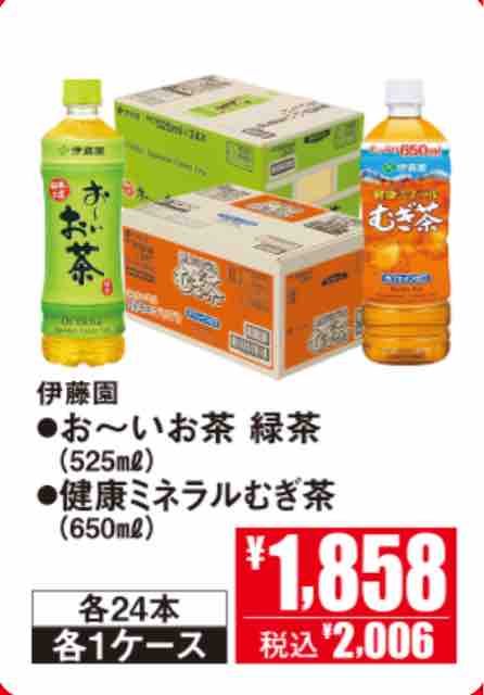 伊藤園お~いお茶緑茶525ml24本入り1箱が税込2,006円。1本当たり83円。食事と一緒にお茶は良く合う。コンビニで買うのであれば、この機会にまとめ買いをして持って行くようにしよう。もっと節約できるのは家で麦茶などを作って水筒に入れて持っていくことだが、なかなかそれはできないという方はまとめ買いをしよう。