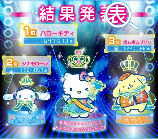 昨年度の結果を見て衝撃的だったのは、ハローキティが4位だったことだ。サンリオと言えばハローキティが一番人気じゃなかったのか。確かにシナモロールも可愛いから上位に入るのも分かるが、あれだけ長年絶大な人気を誇っていたハローキティが4位とは、時代の流れを感じずにはいられなかった。
