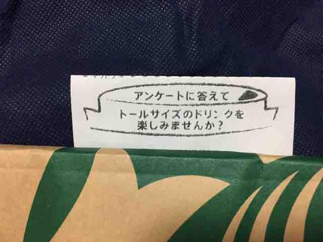 ・アンケートに回答すると好きなトールサイズドリンクがもらえる