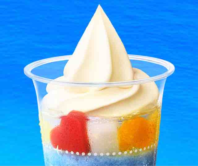 ソフトクリームは濃厚で、北海道産の生乳と生クリームでミルク感を活かし、フルーツの酸味を引き立てる。国産卵黄を加えてコクをアップするなど、進化し続けているミニストップこだわりのソフトクリーム。ハロハロには贅沢にソフトクリームをのせている。