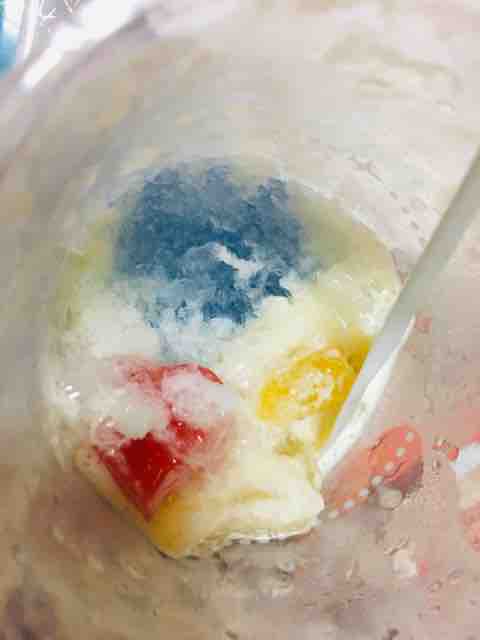 ハロハロのゼリーは黄桃、パイナップル、りんご、ナタデココ、ハートゼリーが入っており、色や形、食感を楽しむことができる。ソフトクリームやかき氷と混ぜて食べるのもおススメ。一個しか入っていない赤いハートゼリーを見つけて楽しむのもいい。