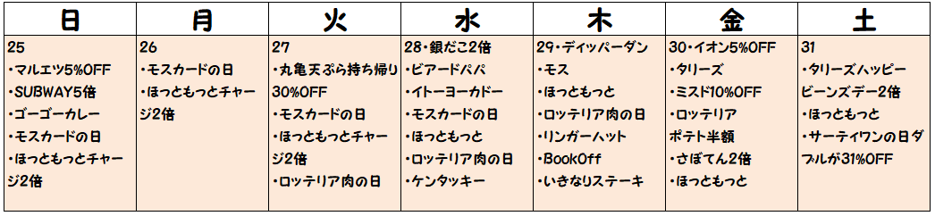 8月第5週目8/25(日)~8/31(土)のお得な日