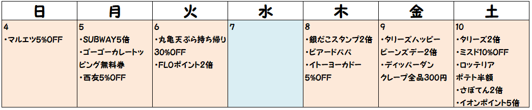 8月第2週目8/4(日)~8/10(土)のお得な日