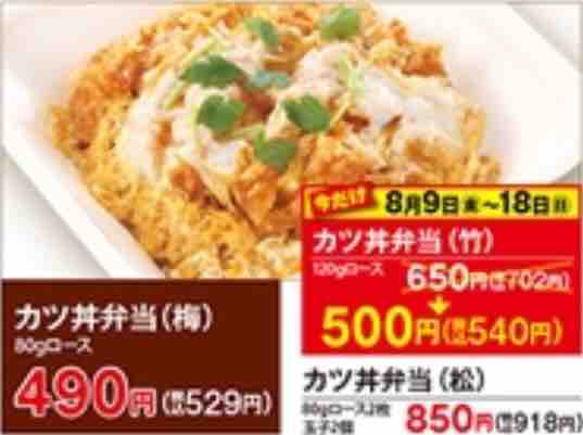・カツ丼(竹)120gロース 650円→500円(税込540円)