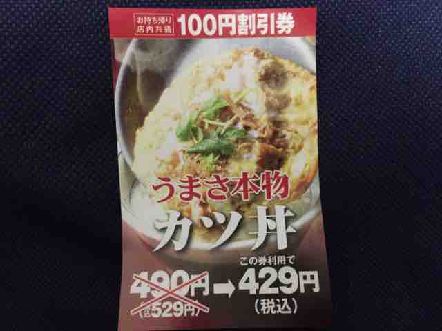 感謝祭の4品は割引券との併用はできないが、会計した後は100円の割引券が通常通りもらえる。100円引きで再来店してもらうことが目的だが、この感謝祭で家族人数分の割引券をもらっておくと、今後もかつやを家族全員で利用するときに、全員100円引きになって更にまた100円割引券がもらえ、割引の無限ループになる。