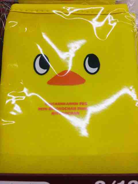 ・ひよこちゃんがデザインされた黄色のペットボトルカバー