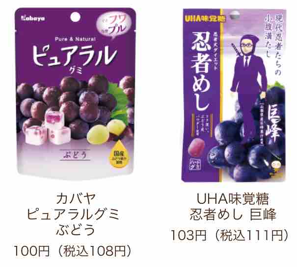 ・カバヤピュアラルグミ ぶどう100円(税込108円)
