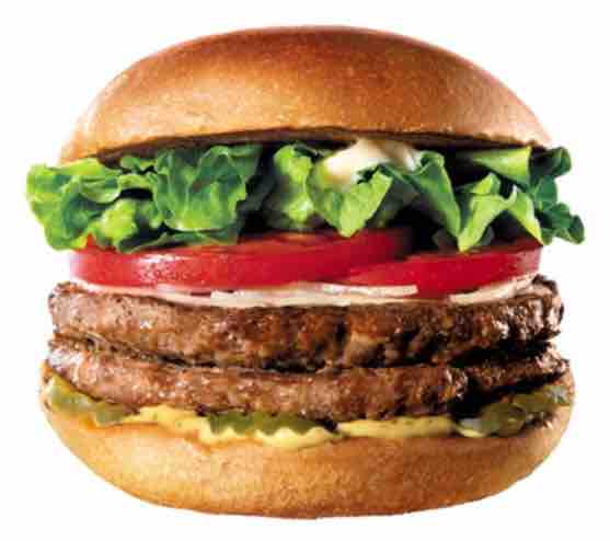 ロッテリアダブルクラシックバーガーは、牛肉本来の旨味を味わえる100%オーストラリア産ビーフパティを2枚重ね、レタス、トマト、スライスオニオン、ピクルスを挟んでハニーマスタードソースで味付けた本格的なハンバーガー。