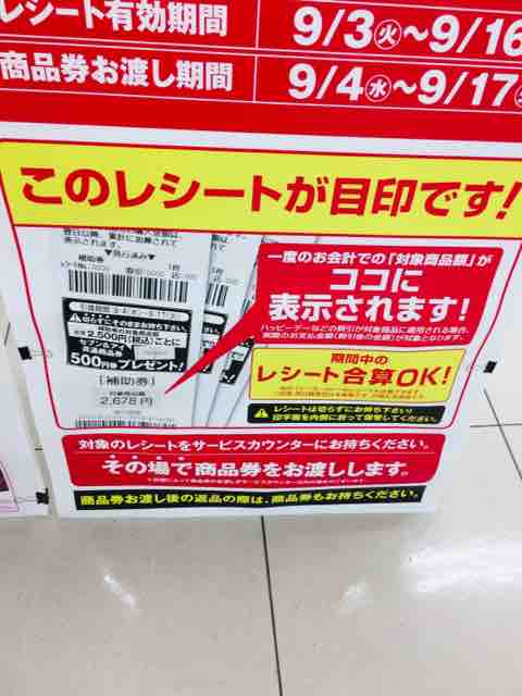 レシート対象期間:2019年9月3日(火)~9月16日(月)