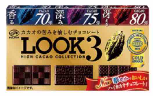 3.不二家 ルック3 ハイカカオコレクション45g130円(税込140円)。ポイント60Pと交換できる。実質80円引き。57%OFF相当。先着15,000個。